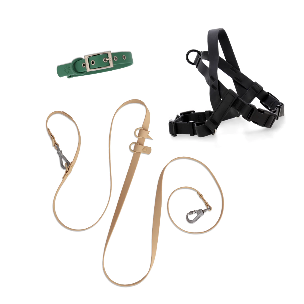 Un combo pensado para quienes buscan control, comodidad y diseño. Este kit incluye un arnés pretal anti tirón, una correa multifunción manos libres y un collar impermeable. Ideal para perros inquietos, fuertes o que suelen tirar.